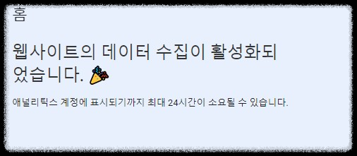 화면 상단에 "웹사이트이 데이터 수집이 활성화 되었습니다."를 확인 할 수가 있습니다.