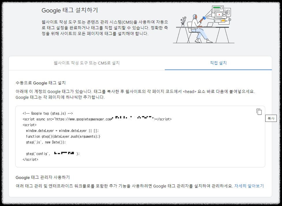 그럼 아래와 같은 화면을 바로 보실 수가 있습니다. 해당 코드를 복사합니다.